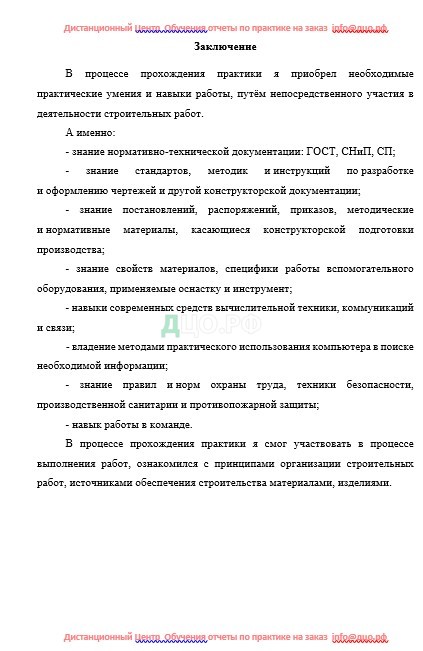 Заключение отчета по практике по строительству