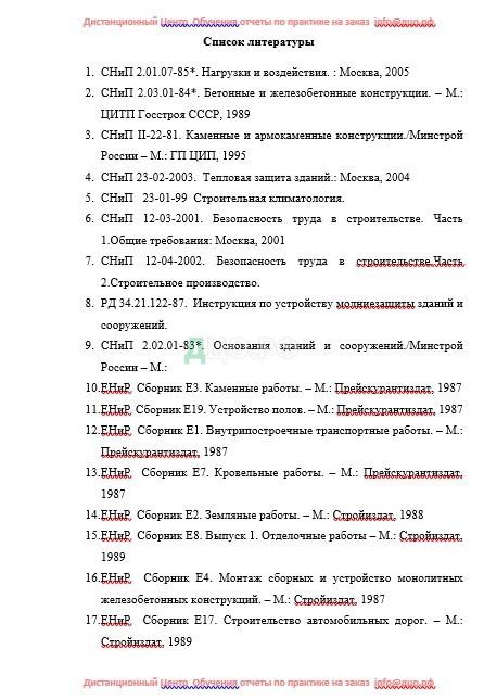 Список литературы отчета по практике по строительству