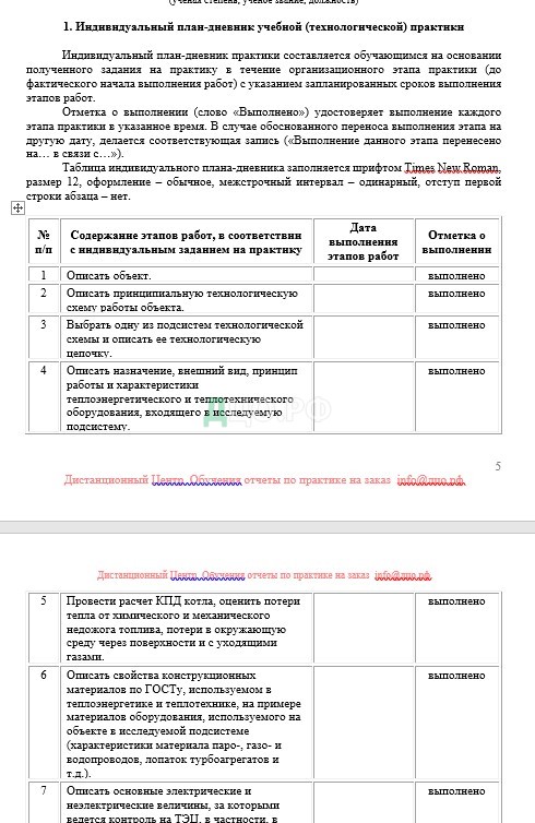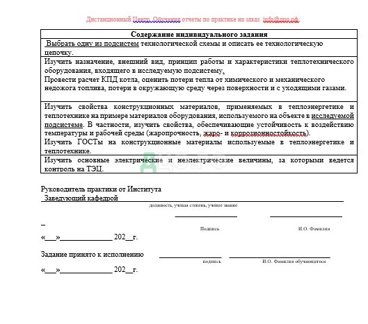 Содержание отчета по практике по теплоэнергетике и теплотехнике