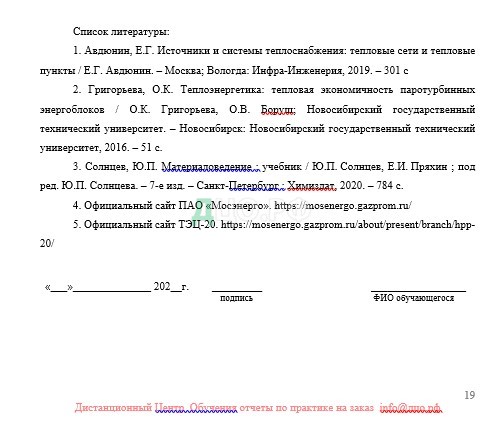 Список литературы отчета по практике по теплоэнергетике и теплотехнике