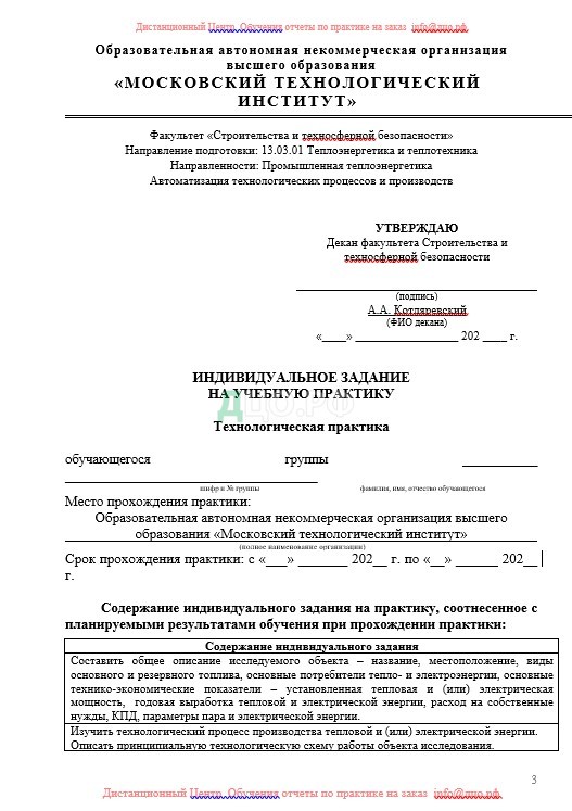 Титульный лист отчета по практике по теплоэнергетике и теплотехнике