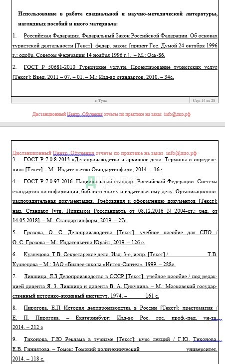 Список литературы отчета по практике по туризму
