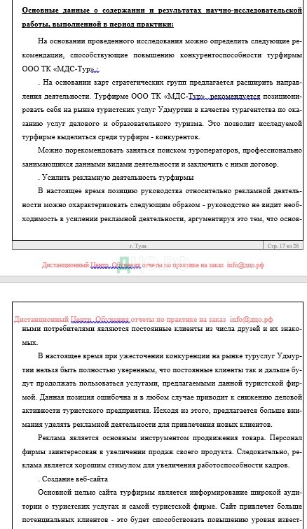 Основная часть отчета по практике по туризму