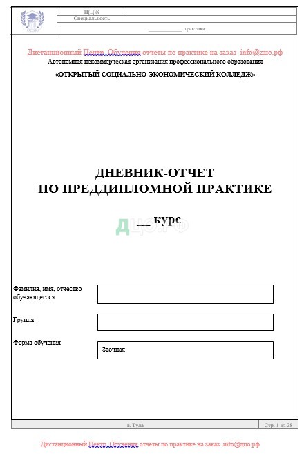 Титульный лист отчета по практике по туризму