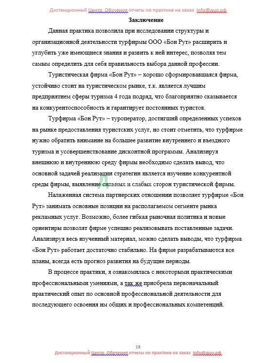Заключение отчета по практике по туризму