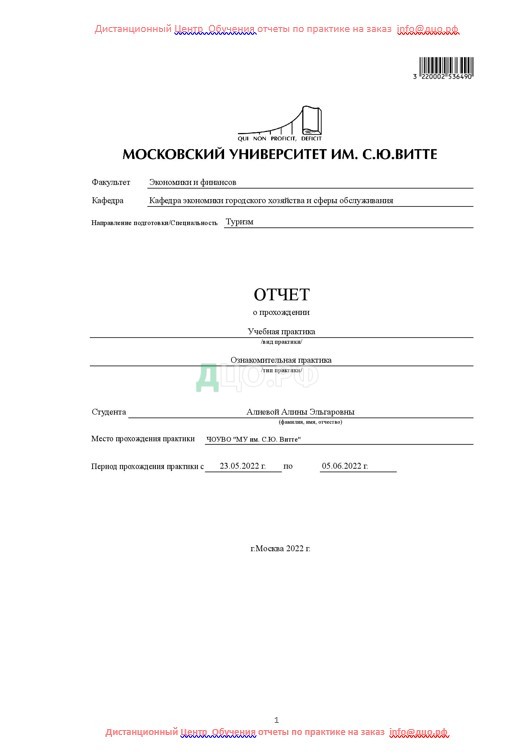 Титульный лист отчета по практике по туризму