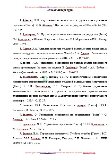 Список литературы отчета по практике по управлению персоналом