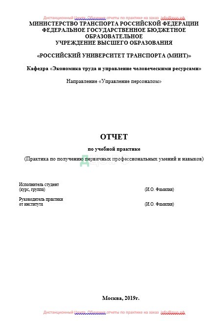 Титульный лист отчета по практике по управлению персоналом