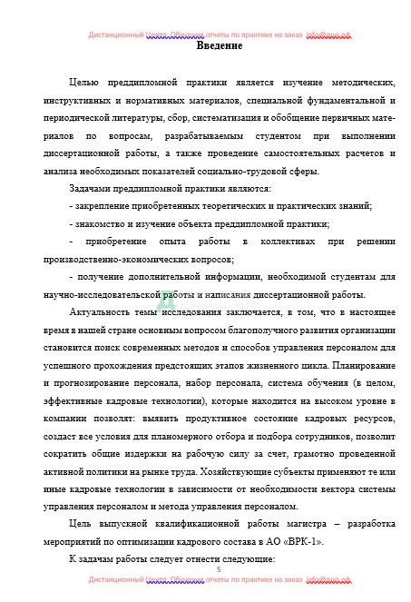 Содержание отчета по практике по управлению персоналом