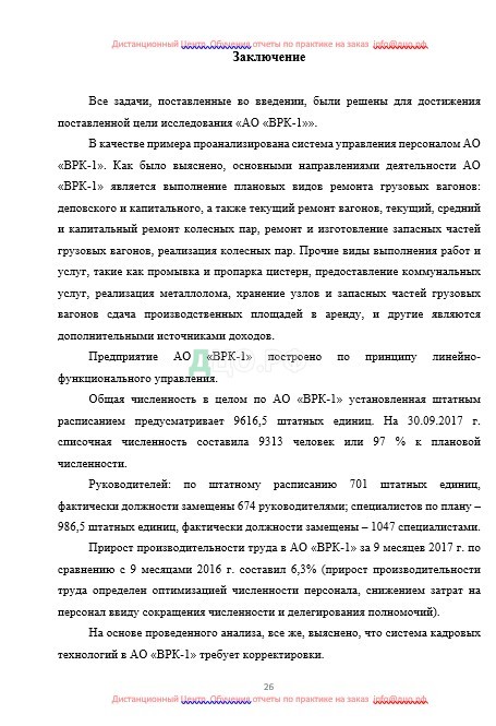 Заключение отчета по практике по управлению персоналом