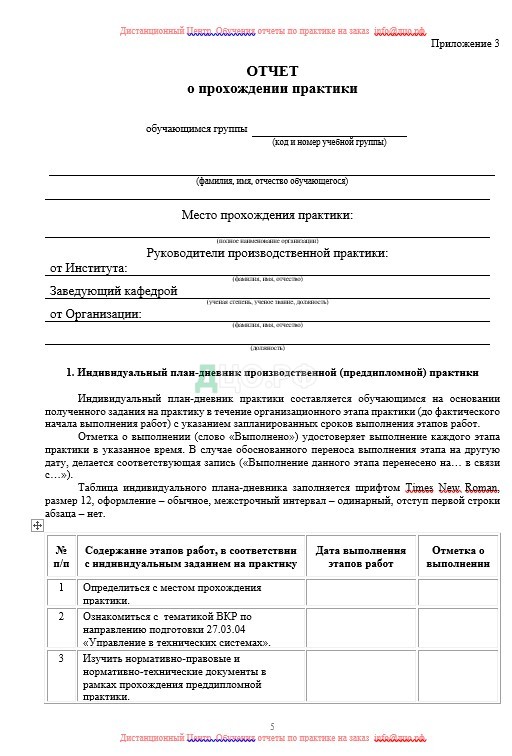Содержание отчета по практике по управлению в технических системах