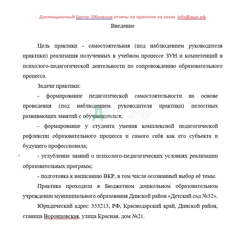 Практика проходила в Бюджетном дошкольном образовательном учреждении муниципального образования Динской район «Детский сад №32».