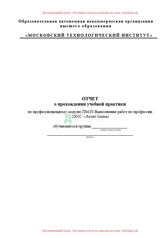 Титульный лист отчета по практике в Банке