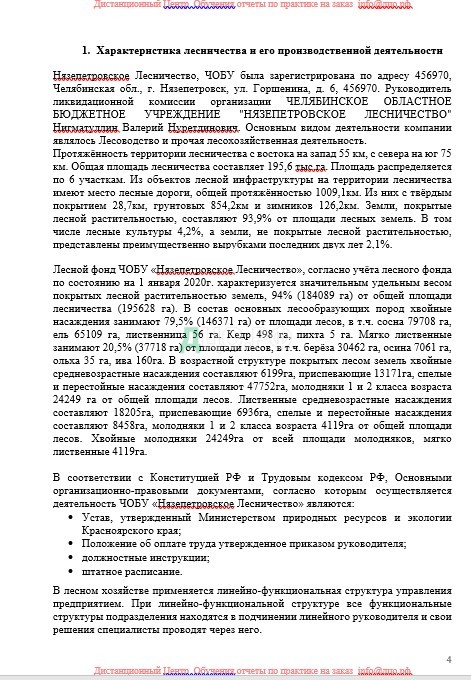 4. изучить все аспекты хозяйственно-финансовой деятельности лесничества.
