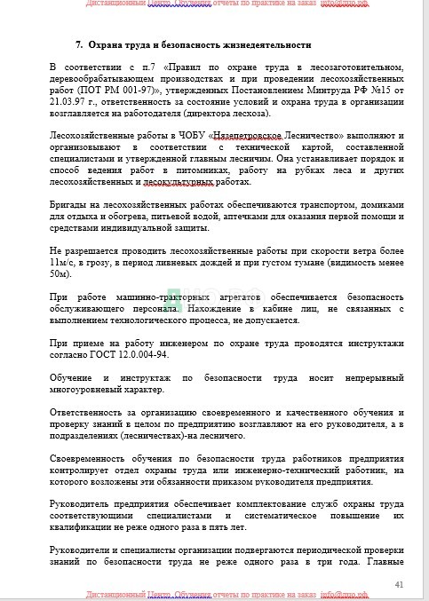 1. ознакомиться с действующей системой организацией управления и особенностями хозяйственно-финансовой деятельности лесничества;