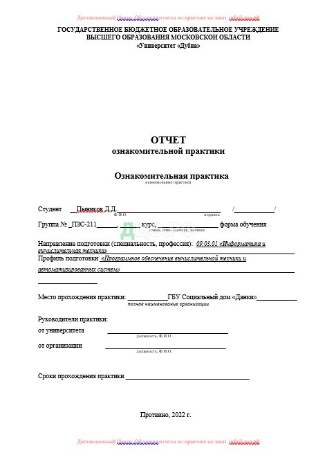 Содержание отчета по практике в Дубна