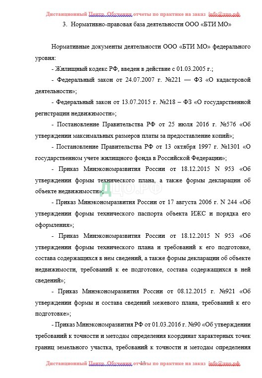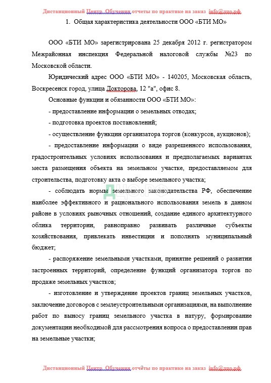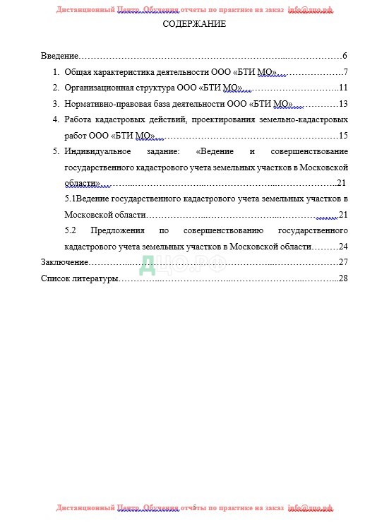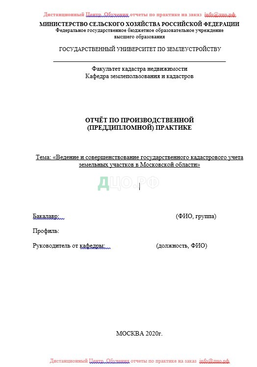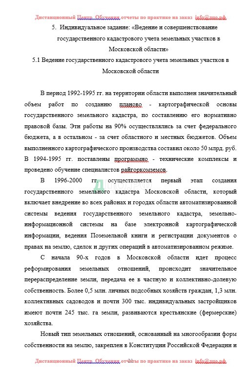 Содержание отчета по практике в ГУ по землеустройству