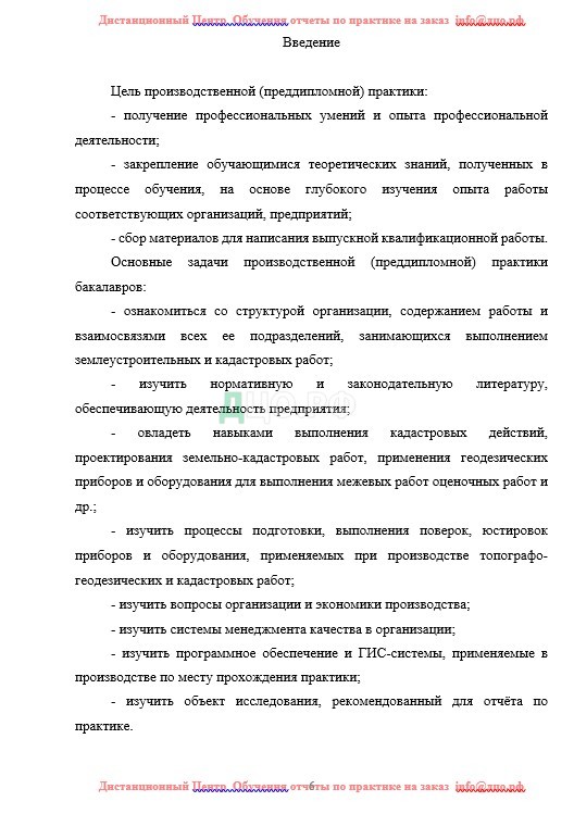 Введение отчета по практике в ГУ по землеустройству