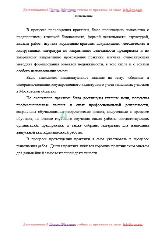 Заключение отчета по практике в ГУ по землеустройству