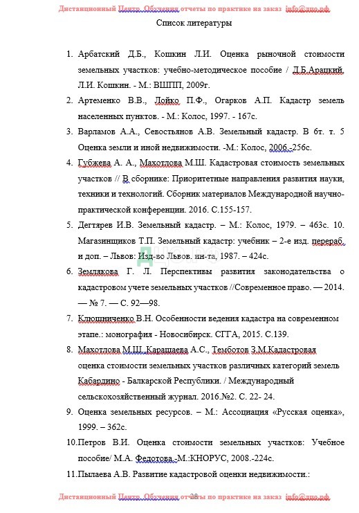Список литературы отчета по практике в ГУ по землеустройству