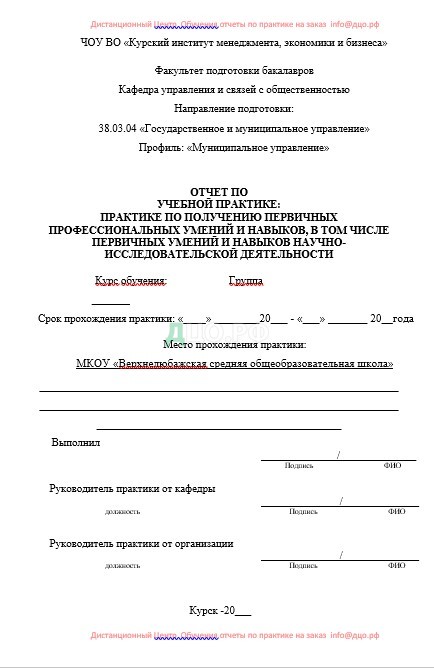 Титульный лист отчета по практике в КИМЭБ