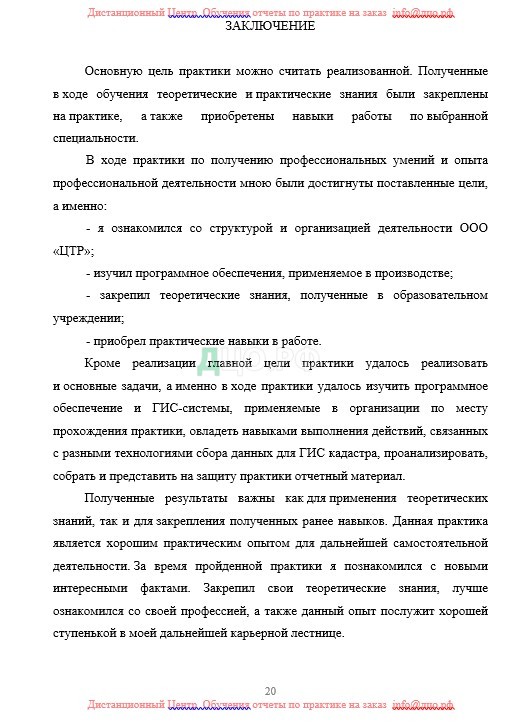 Заключение отчета по практике в МУГК