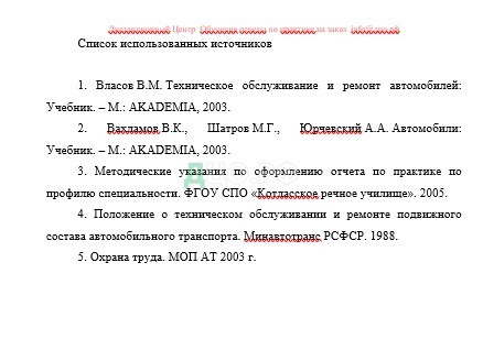 Список литературы отчета по практике в Муниципальном учреждении