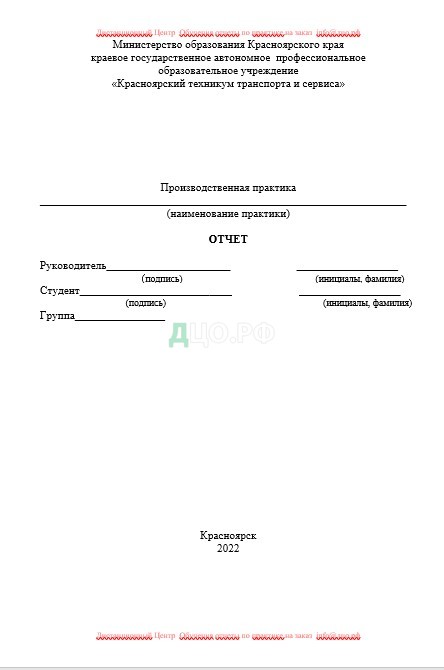 Титульный лист отчета по практике в Муниципальном учреждении