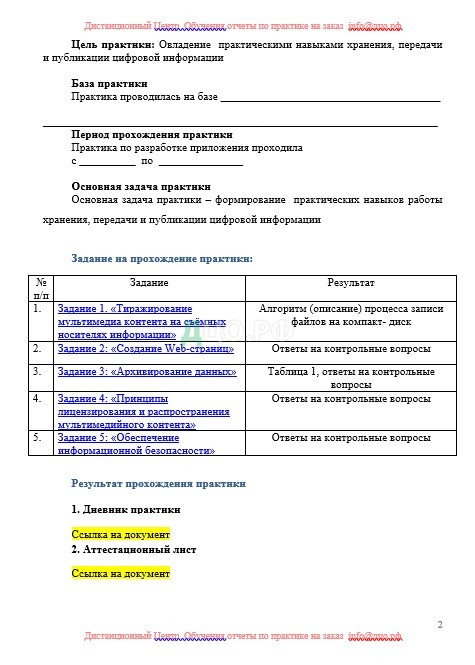 Практическая часть включает в себя выполнение Задания на прохождение практики: