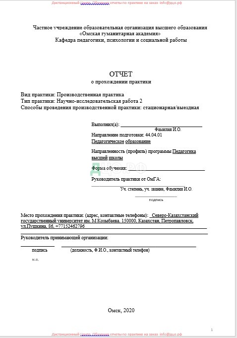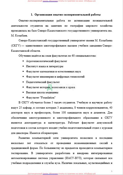 Место прохождения практики: Северо-Казахстанский государственный университет им. М Козыбаева. 150000, Казахстан, Петропавловск, ул.Пушкина, 86, +77152462796.