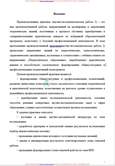 Производственная практика (научно-исследовательская работа 2) – это вид производственной работы, направленный на расширение и закрепление теоретических знаний, полученных в процессе обучения, приобретение и совершенствование практических навыков по избранной образовательной программе, подготовку к будущей профессиональной деятельности. В ходе прохождения производственной практики(научно-исследовательская работа 2) происходит закрепление знаний по педагогическим, психологическим, управленческим дисциплинам, изучаемым в соответствии с учебным планом по направлению «Педагогическое образование», вырабатывают практические навыки и способствуют комплексному формированию общекультурных и профессиональных компетенций магистрантов.