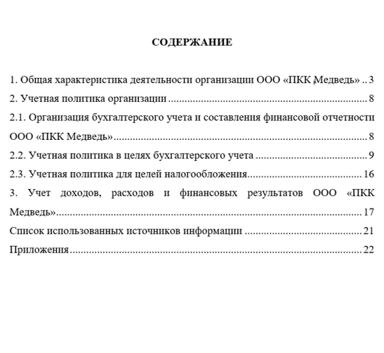 Организация бухгалтерского учета и составления финансовой отчетности ООО «ПКК Медведь»