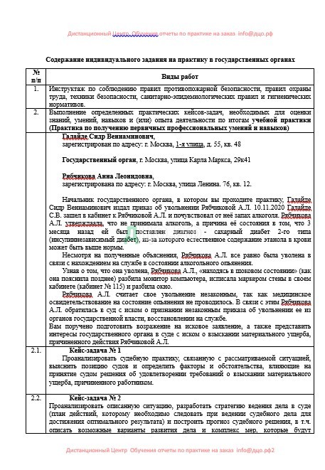 Содержание отчета по практике в отделе полиции