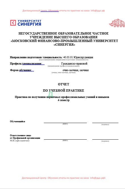Титульный лист отчета по практике в отделе полиции
