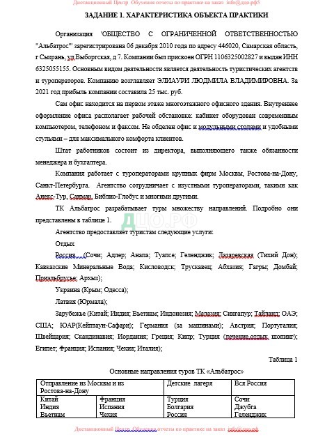 3. Ознакомление с деятельностью одной из туристических фирм (агентств) или экскурсионных бюро города, в том числе охарактеризовав: