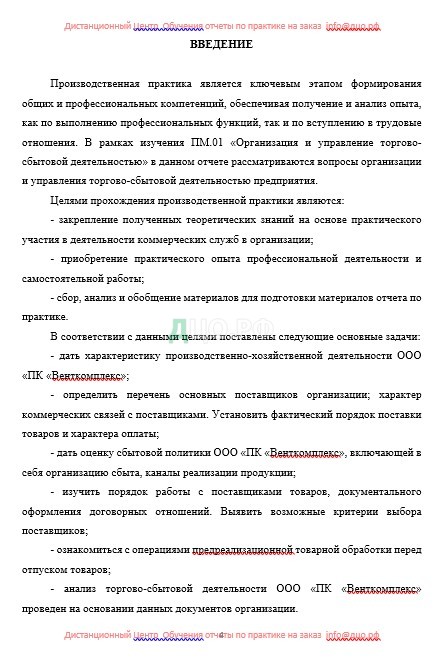Производственная практика является ключевым этапом формирования общих и профессиональных компетенций, обеспечивая получение и анализ опыта, как по выполнению профессиональных функций, так и по вступлению в трудовые отношения. В рамках изучения ПМ.01 «Организация и управление торгово-сбытовой деятельностью» в данном отчете рассматриваются вопросы организации и управления торгово-сбытовой деятельностью предприятия.