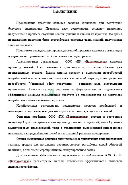 — дать оценку сбытовой политики ООО «ПК «Венткомплекс», включающей в себя организацию сбыта, каналы реализации продукции;