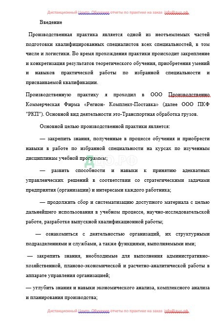 Производственную практику я проходил в ООО Производственно Коммерческая Фирма «Регион- Комплект-Поставка» (далее ООО ПКФ «РКП»). Основной вид деятельности это-Транспортная обработка грузов.