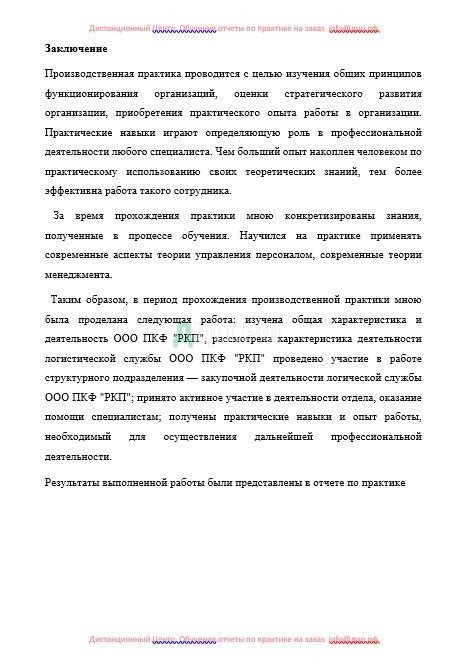 Производственная практика является одной из неотъемлемых частей подготовки квалифицированных специалистов всех специальностей, в том числе и логистики. Во время прохождения практики происходит закрепление и конкретизация результатов теоретического обучения, приобретения умений и навыков практической работы по избранной специальности и присваиваемой квалификации.