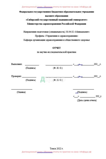 Содержание отчета по практике в СибГМУ