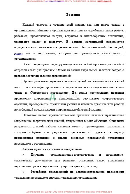 Производственная практика является одной из неотъемлемых частей подготовки квалифицированных специалистов всех специальностей, в том числе и «Управление персоналом». Во время прохождения практики происходит закрепление и конкретизация результатов теоретического обучения, приобретение студентами умения и навыков практической работы по избранной специальности и присваиваемой квалификации.