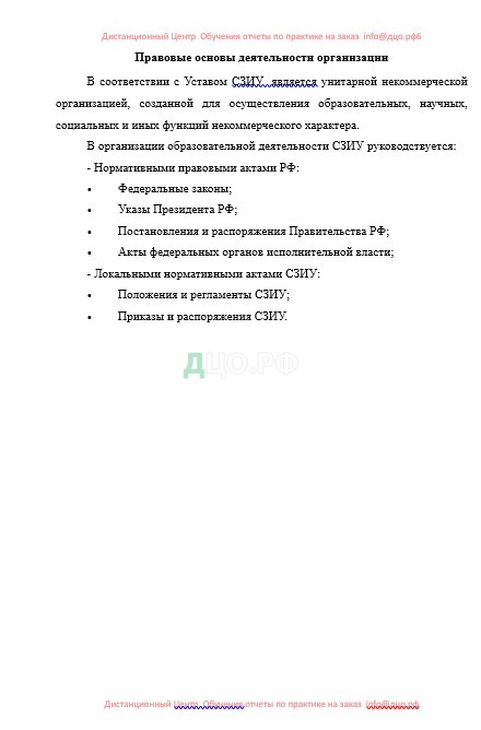 формирование знаний о правовых основах деятельности организации, ее структуре, о целях и задачах деятельности юридической службы организации;