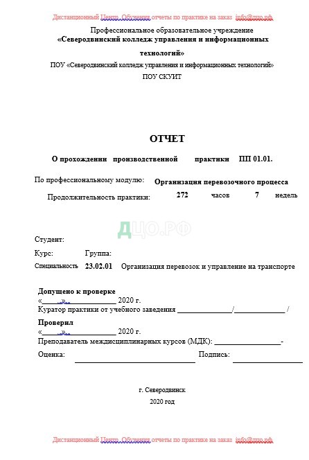 Титульный лист отчета по практике в СКУИТ