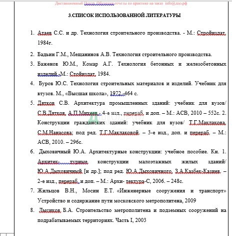 Список литературы отчета по практике в СПбГАСУ