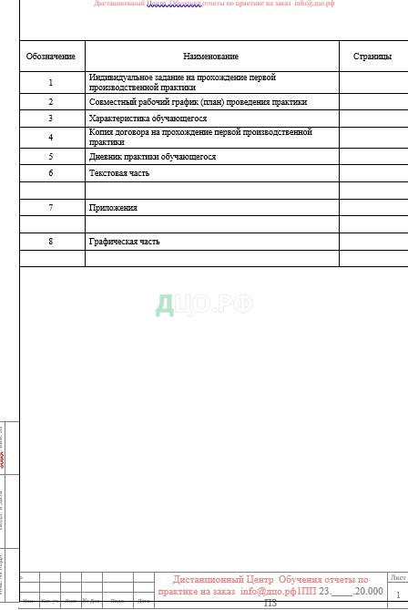 Содержание отчета по практике в СПбГАСУ