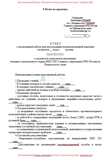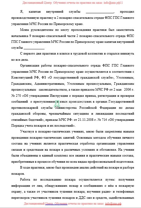 Я, капитан внутренней службы ________________, проходил производственную практику в 2 пожарно-спасательном отряде ФПС ГПС Главного управления МЧС России по Приморскому краю.