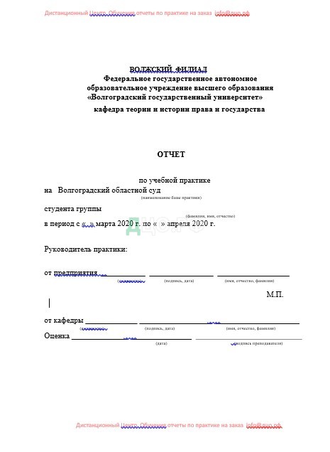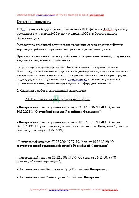 1. Я, , студентка 4 курса заочного отделения ВГИ филиала ВолГУ практику проходила с « » марта 2020 г. по « » апреля 2020 г. в Волгоградском областном суде.