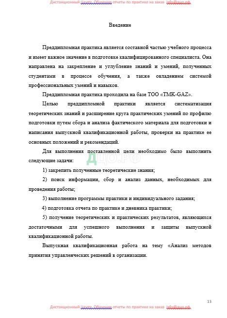 Преддипломная практика является составной частью учебного процесса и имеет важное значение в подготовке квалифицированного специалиста. Она направлена на закрепление и углубление знаний и умений, полученных студентами в процессе обучения, а также овладением системой профессиональных умений и навыков.