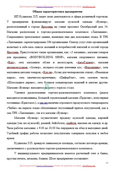 • ознакомление с коммерческой документацией организации;