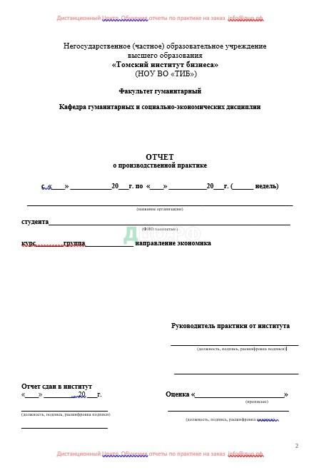 Титульный лист отчета по практике в ТИБ